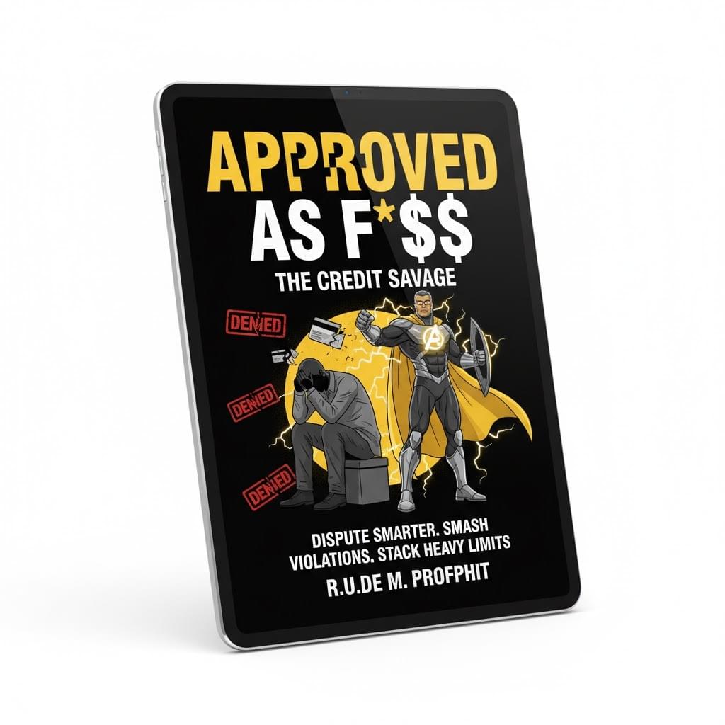 Get the 'Approved As F^&$: The Credit Savage' Ebook for just $5 and learn the system to smash violations and build a fundable profile.